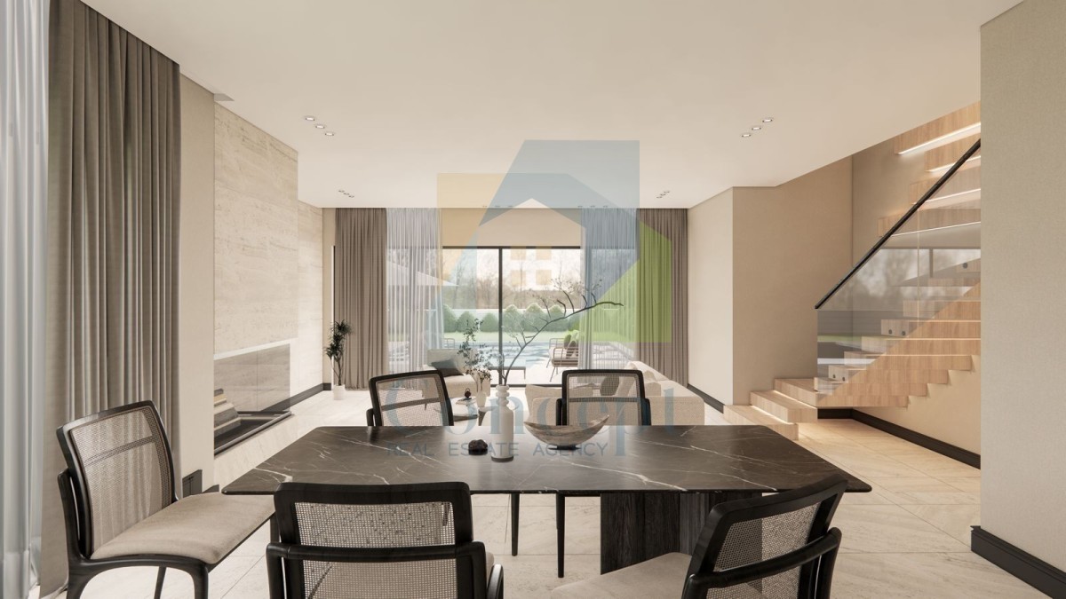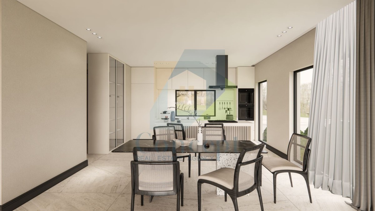 V okolici Poreča se prodaja hiša na koncu niza, trenutno v gradnji, na mirni lokaciji z dobro dostopnostjo vseh potrebnih vsebin.
