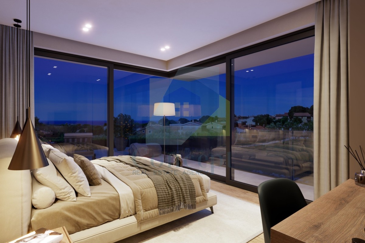 V nadstropju bosta še dve spalnici, vsaka z lastno kopalnico, ter ena pokrita in ena nepokrita terasa. Hiša bo orientirana proti jugozahodu, z odprtim pogledom na morje.