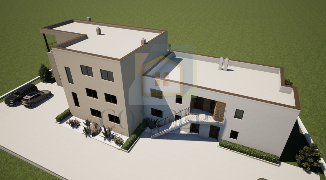 Na prodajo je stan v prvem nadstropju nove gradnje v manjšem stanovanjski zgradbi, ki obsega skupno osem stanovanj, nahajajoči se v urejenem naselju s popolno infrastrukturo. Lokacija je primerna za vsakodnevno življenje in turistične najeme – vsi potrebni objekti, kot so trgovine, šole, vrtci in restavracije, se nahajajo v peš coni, morje pa je oddaljeno le 3 km.