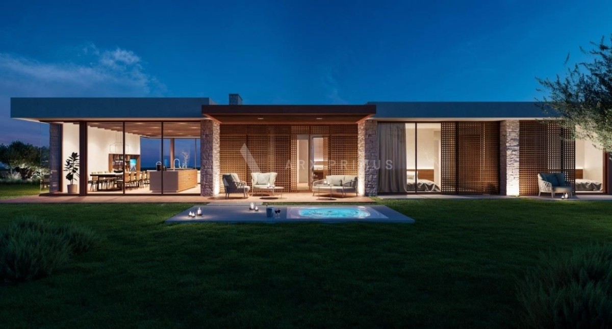 Vila je zasnovana po najvišjih standardih in združuje sodobno arhitekturo z velikimi odprtinami in vrhunskimi materiali ter tradicionalni istrski slog s suhozidom in lesenimi tramovi.