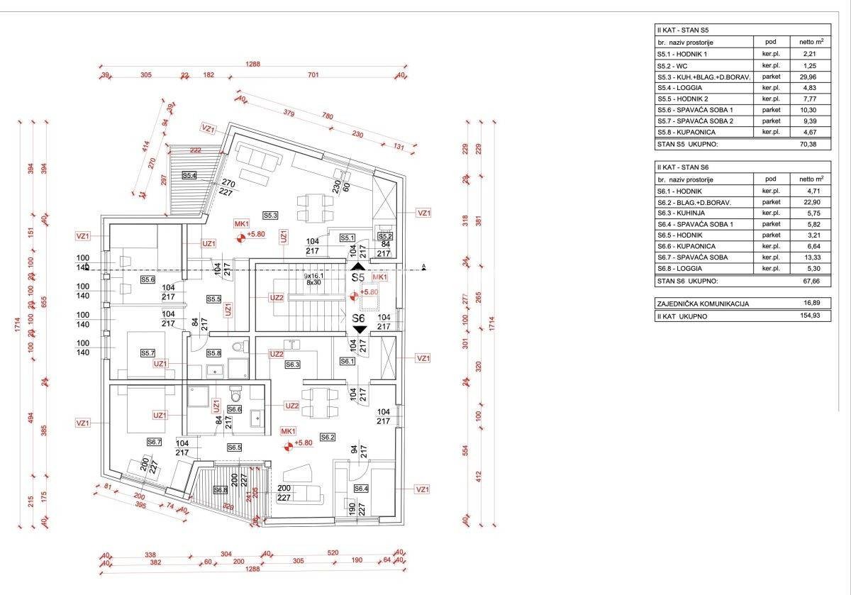Skupna neto uporabna površina stanovanja znaša 70,38 m2.