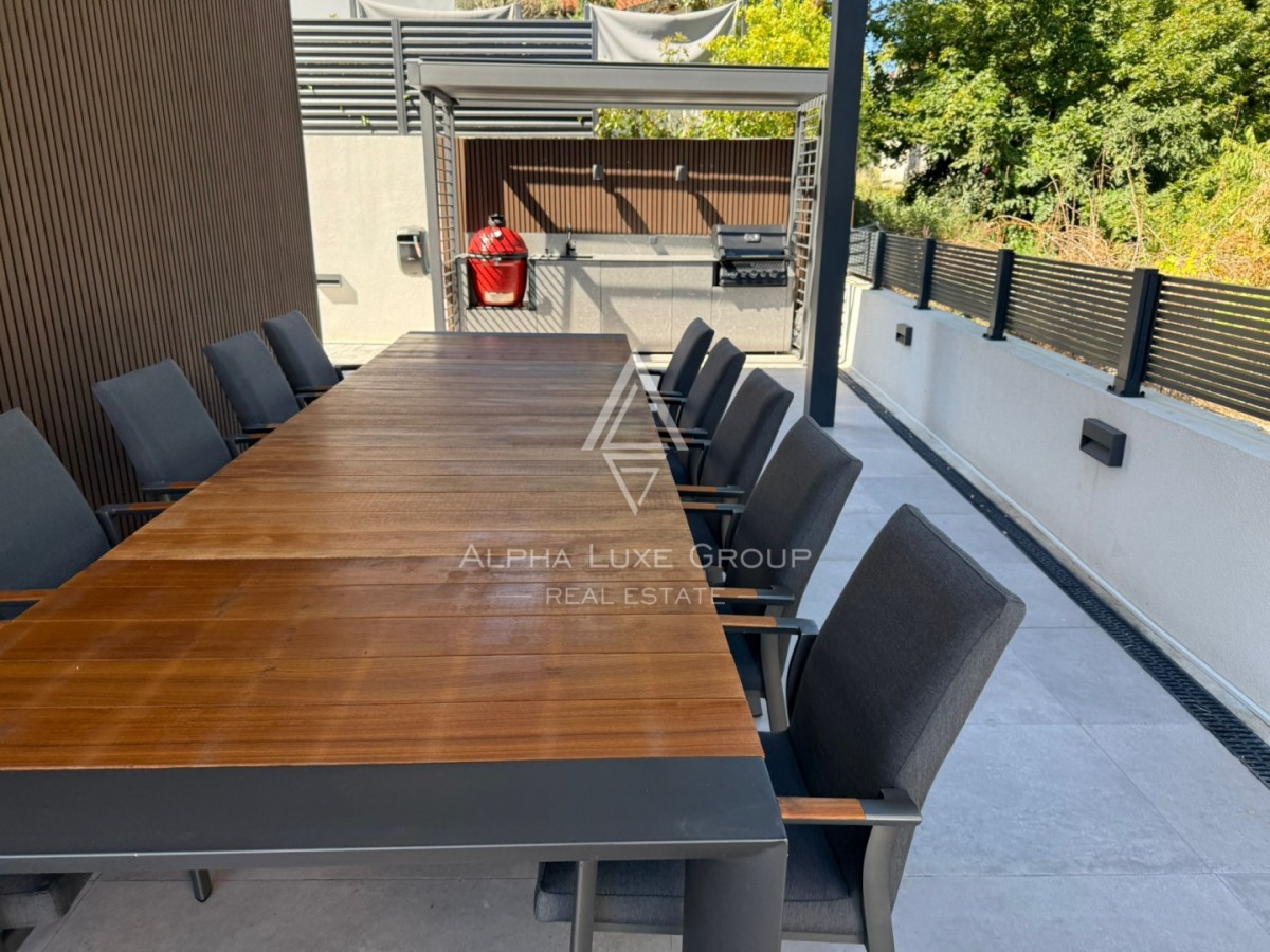 Na dvorišču je zunanja prha, načrtovana je tudi poletna kuhinja z žarom, nadstreškom in elegantnim vrtnim pohištvom.