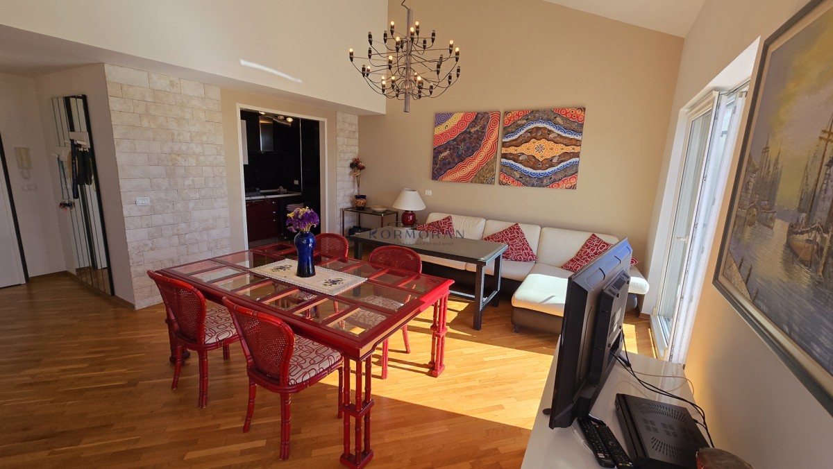 Prodaja se 3,5-sobno stanovanje površine 80 m2, umeščeno v drugem nadstropju stavbe, zgrajene leta 2007, na mirni in privlačni lokaciji v Umagu, Zambratiji. Ta nepremičnina izstopa po zelo sončni južni legi in ponuja lep pogled, vključno z razgledom na morje.