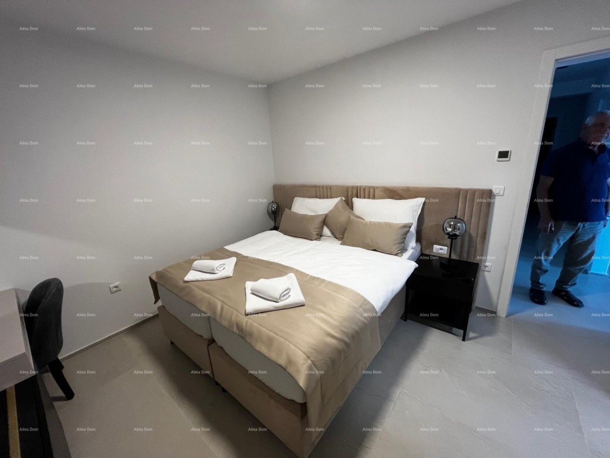 Prodamo čudovito stanovanje v Medulinu z garažo. Stanovanje je sestavljeno iz velike dnevne sobe s pogledom na morje, lepe velike kuhinje. 3 spalnice, vsaka s svojo kopalnico. Stanovanju pripada parkirno mesto v garaži.