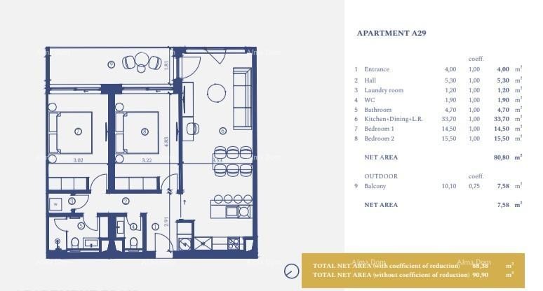 Apartma A-29 (90,9 m2) se nahaja v 2. nadstropju: