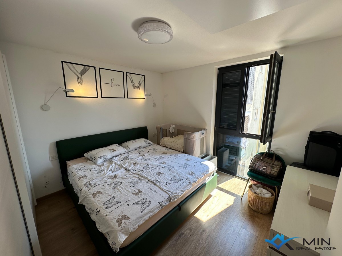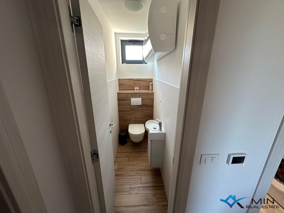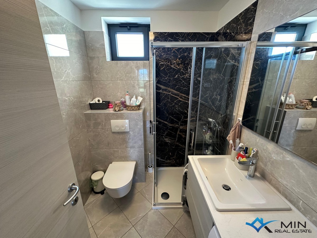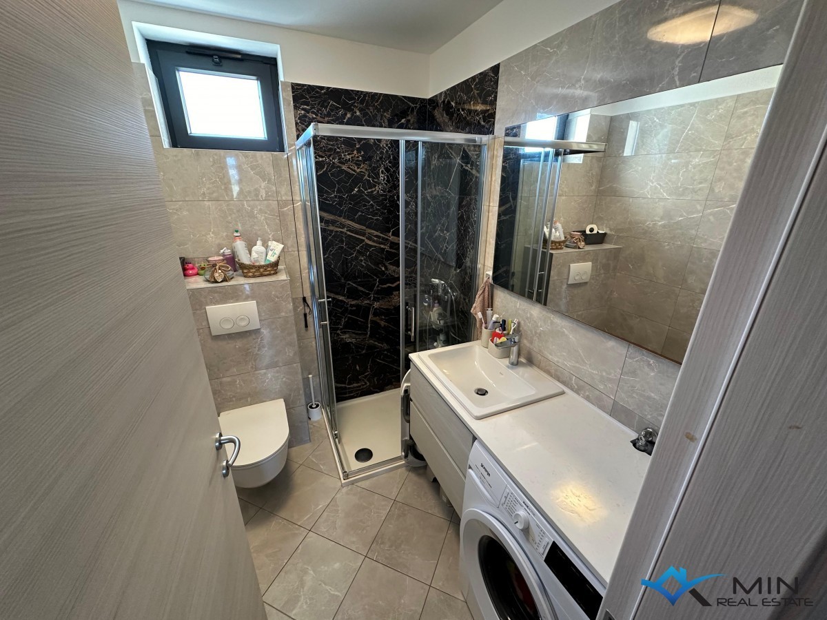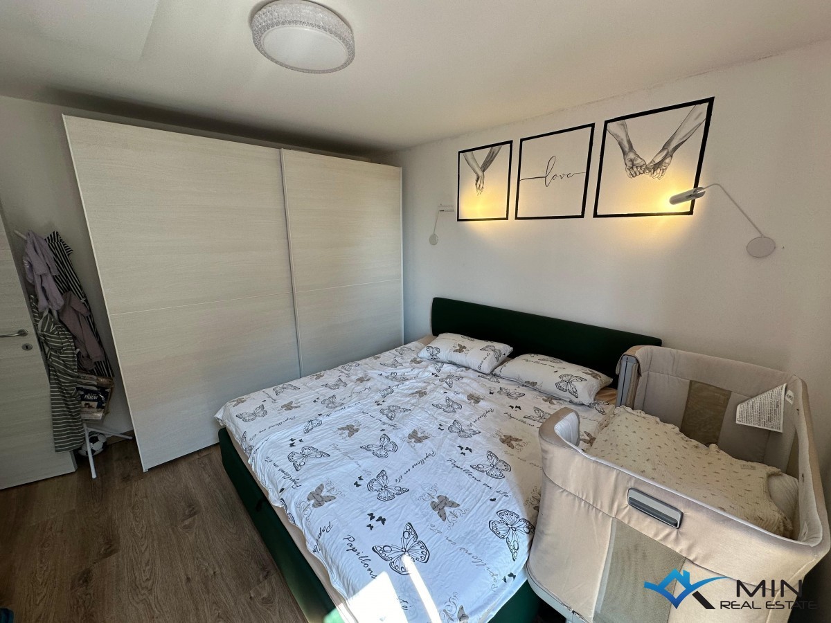 Prodamo stanovanje v bližini vseh pomembnih objektov v Novigradu ter 400 m od morja in lepo urejene plaže in centra mesta. Stanovanje je veliko 88 m2 in je sestavljeno iz predsobe, shrambe, hodnika, kopalnice, WC-ja, kuhinje, 3 spalnic, dnevne sobe z jedilnico, terase in drvarnice v pritličju stavbe. Ogrevanje v stanovanju poteka s pomočjo infrardečih panelov, hlajenje pa s pomočjo klimatske naprave. Stanovanju pripada parkirno mesto pred objektom, za objektom pa je dodatno parkirišče s polnilno vtičnico za električno vozilo. Stanovanje je bilo leta 2020 v celoti prenovljeno. Na novo je bila vgrajena električna in vodovodna napeljava, zasteklitev, izolacija tal in stropa (stiropor in kamena volna), PVC okna, na glavnem vodu pa je bila vgrajena naprava za mehčanje vode. Stanovanje je naprodaj v celoti opremljeno.