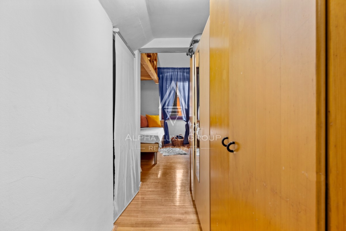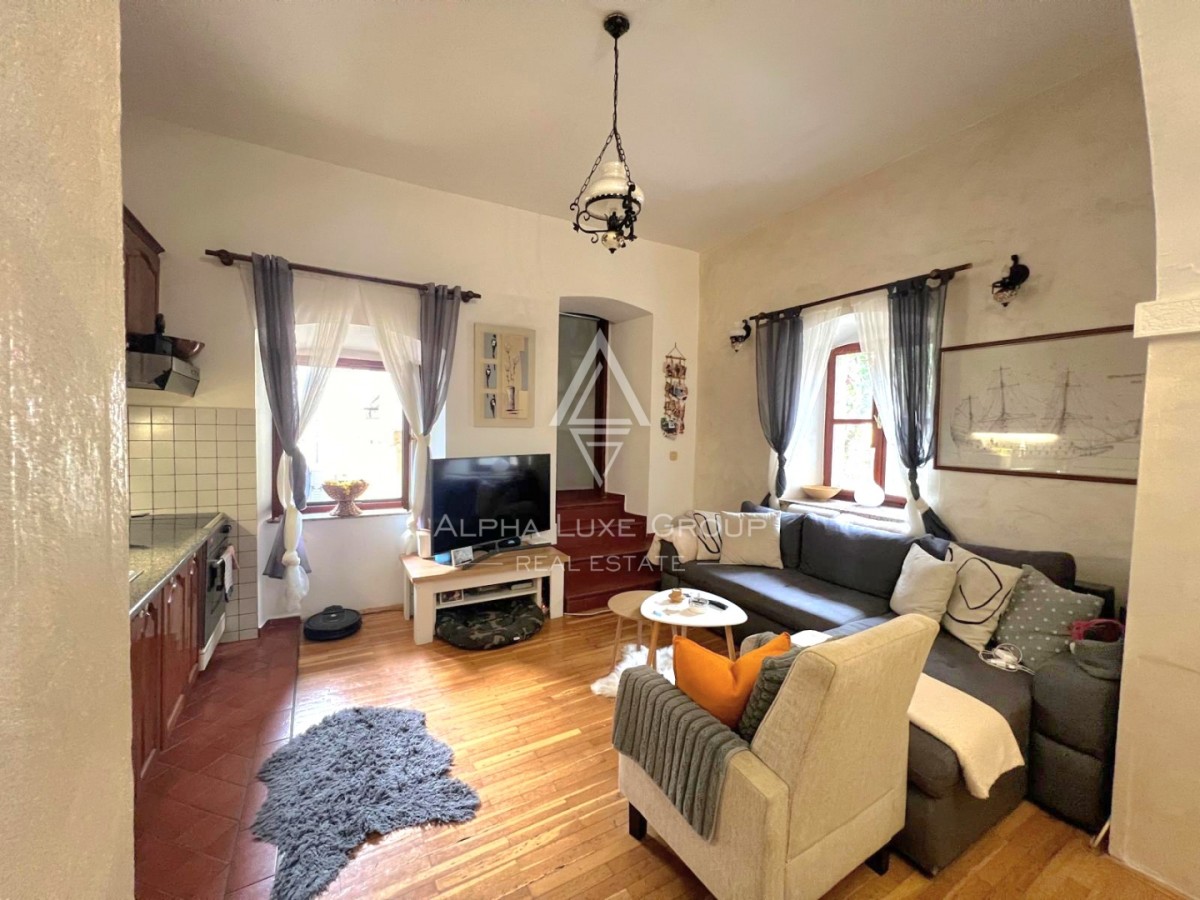 Visoki stropi in ohranjeni oboki v dnevni sobi ustvarjajo edinstveno vzdušje, ki ga ni mogoče najti v novogradnjah. Dve spalnici, moderna kopalnica in terasa – prava redkost v starem mestnem jedru – naredijo prostor izjemno funkcionalen in privlačen.