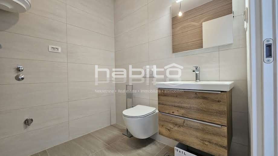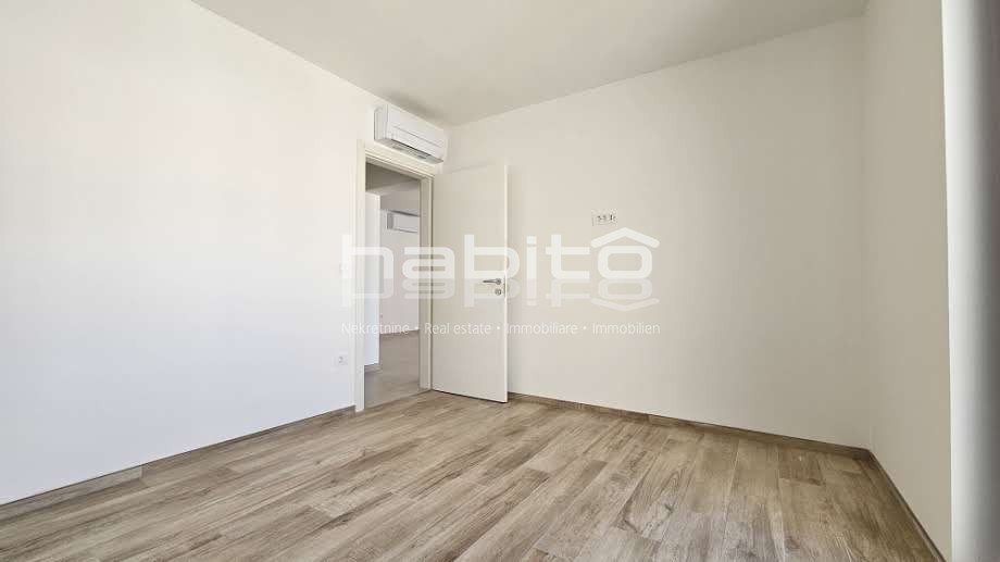 Stanovanje obsega dve spalnici, kopalnico, WC za goste, odprto kuhinjo, jedilnico in dnevno sobo.