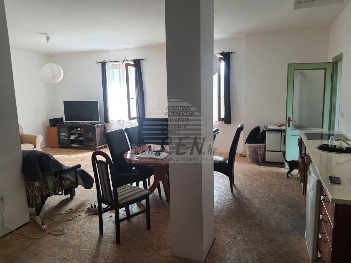 Stanovanje v okolici Novigrada ima skupno 134 m2, nahaja se v prvem nadstropju, oddaljen 2 km od morja in od prekrasne urejene, naravne, kamnite plaže. Stanovanje se nahaja 4 km od centra Novigrada. Stanovanje je razdeljeno na 3 spalnice, kuhinju, dnevnu sobu, kopalnicu, terasa, skladišče, prodaje se opremljen.