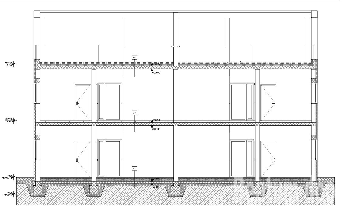Dve spalnici, dve kopalnici, en wc, kuhinja, dnevna soba, jedilnica, shramba