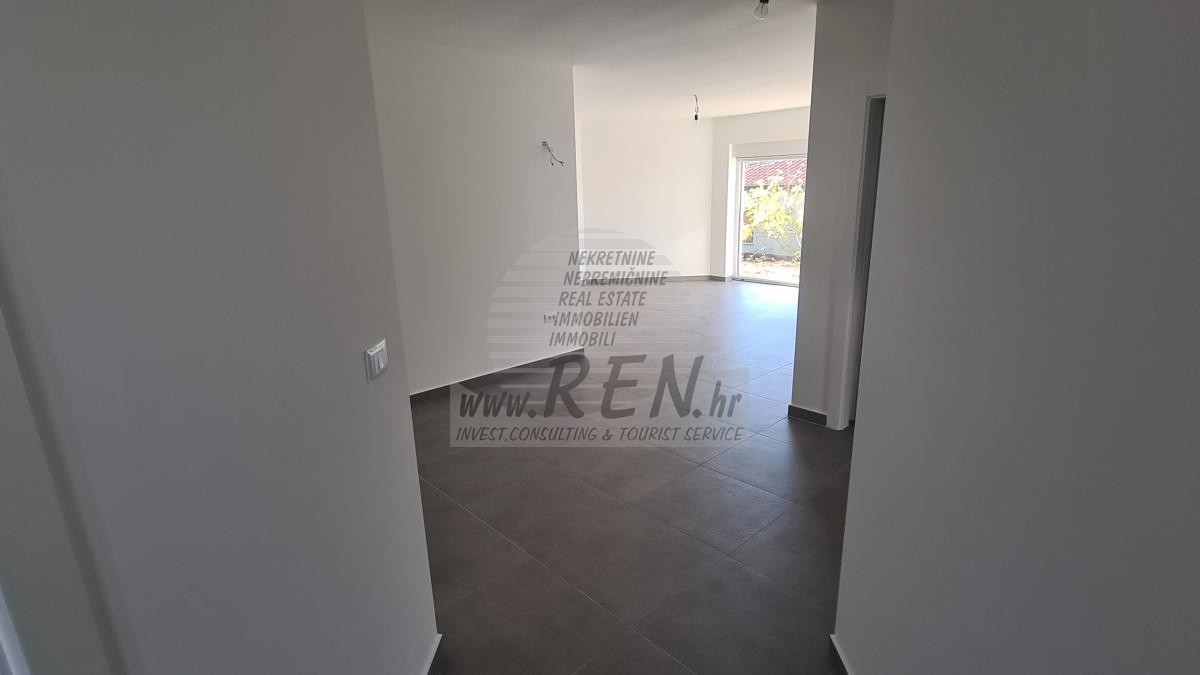 Stanovanje v okolici Umaga ima skupno 64,00 m2 + vrt, nahaja se v pritličju, v izgradnji, oddaljeno je 5 min (400m) od morja in od prekrasne urejene plaže ter 10 min (4000m) od centra Umaga. Razdeljeno je na kuhinjo/dnevno sobo, kopalnica, 2 spalnice in teraso. Ogrevanje in hlajenje s klimatsko napravo. Pripada mu tudi parkirno mesto, klet in garaža.