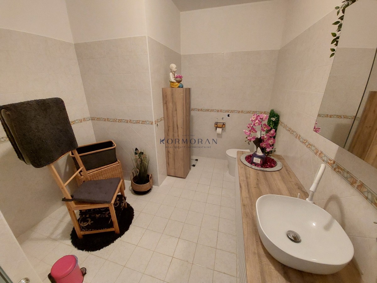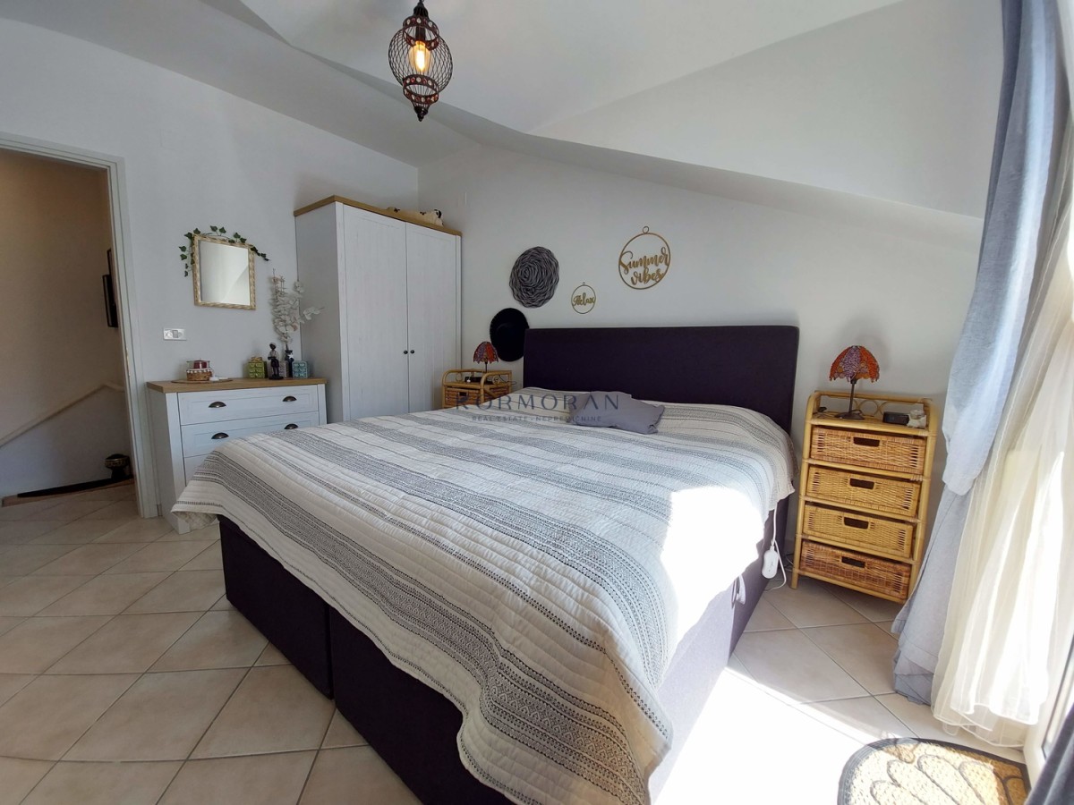 Stanovanje s pogledom na morje se nahaja na Crvenem Vrhu in ima skupaj: 83,68 m2. V prvem nadstropju je dnevna soba, kopalnica, kuhinja, hodnik in terasa, drugo nadstropje pa je dostopno po stopnicah in obsega 2 spalnici, hodnik, kopalnico in teraso. Obe terasi imata pogled na morje. Opremljen je z veliko okusa