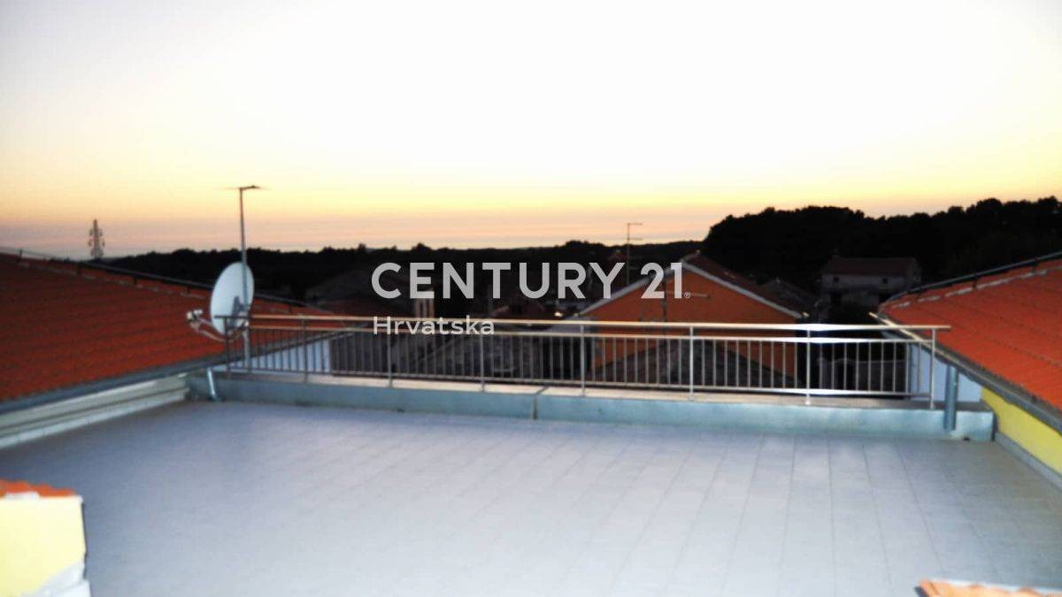 Po stopnicah pridemo na veliko strešno teraso (14 m2) s pogledom na morje v daljavi.