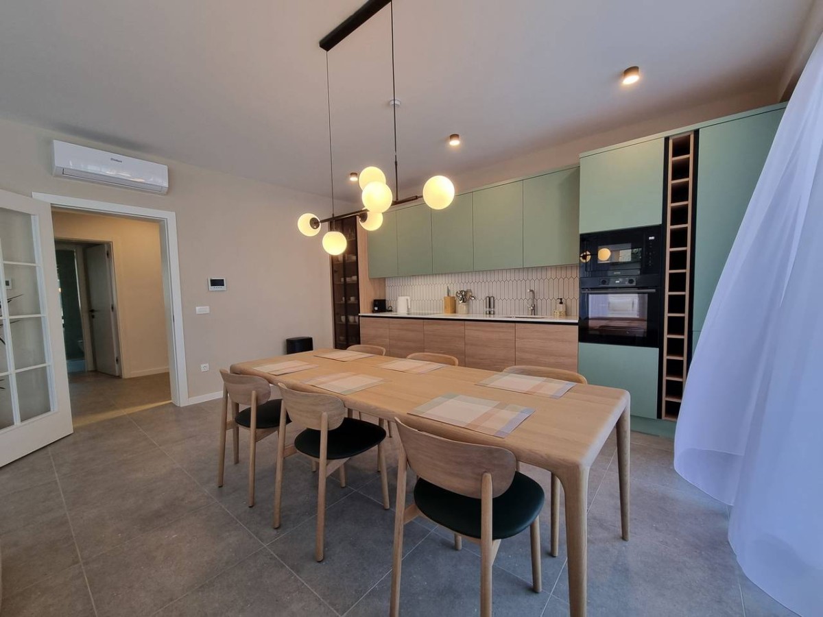 Stavba ima samo 4 stanovanjske enote in se nahaja na mirni lokaciji, nedaleč od središča kraja z vsemi vsebinami ter ponuja pogled na morje z višjih nadstropij stavbe (prvega in drugega nadstropja). Vsa stanovanja so dvoetažna.