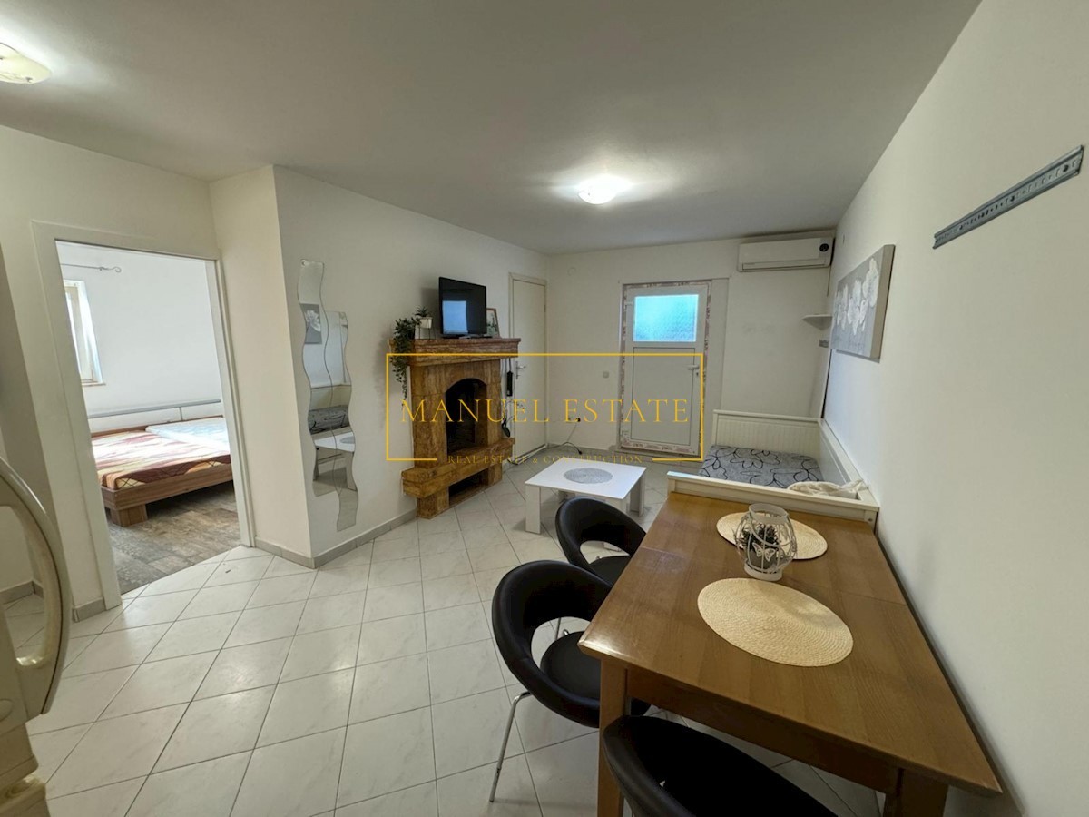 Apartma obsega 48,72 m² in vključuje prostorno dnevno sobo z jedilnico in kuhinjo, dve udobni spalnici, kopalnico ter dodatno shrambo. Delno je opremljen, z razmišljeno postavitvijo in prijetnim vzdušjem. Klimatska naprava zagotavlja prijetno temperaturo skozi vse leto, medtem ko kamin in možnost namestitve peči na drva ali pelete nudita dodatno toplino in prijetno vzdušje.