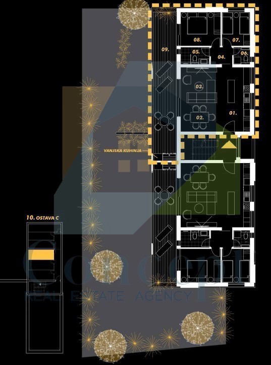 Stavba je zgrajena po visokih standardih, z zunanjimi zidovi iz Porotherm opeke debeline 25 cm in fasado obloženo s 10 cm toplotno izolacijo iz stiropora. Zunanja stavbna pohištva bo iz kakovostnega PVC-ja v antracitni barvi, opremljena z električnimi roletami. Za optimalno udobje v vseh prostorih bo nameščen multisplit sistem za ogrevanje in hlajenje, medtem ko je ob doplačilu možno vgraditi talno ogrevanje.