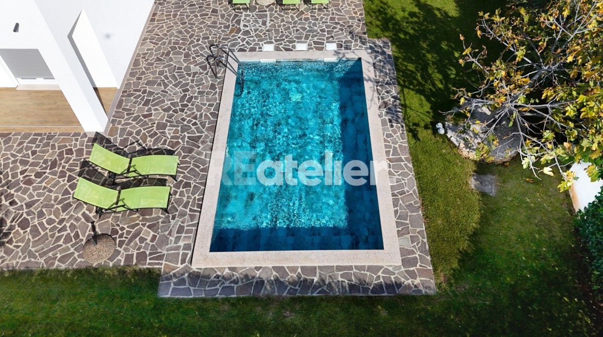 Nepremičnina stoji na zemljišču velikosti 750 m² in obsega dve ločeni stanovanjski enoti, shrambo ter samostojno hišico velikosti 19 m², ki služi kot soba za goste z lastno kopalnico. Na dvorišču se nahajajo zunanji bazen, urejen vrt in zasebno parkirišče za več vozil.