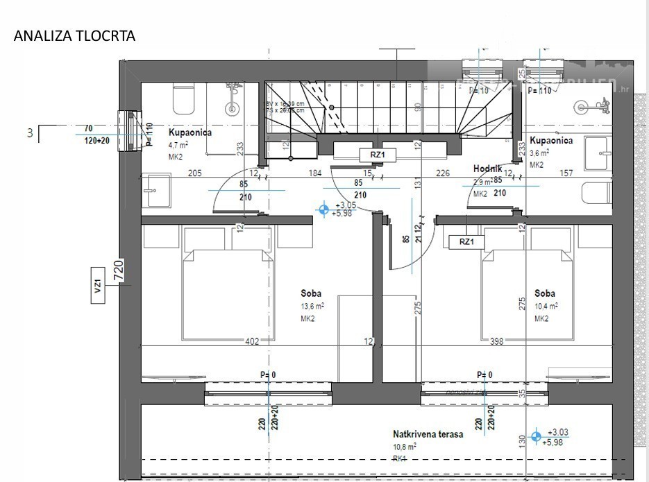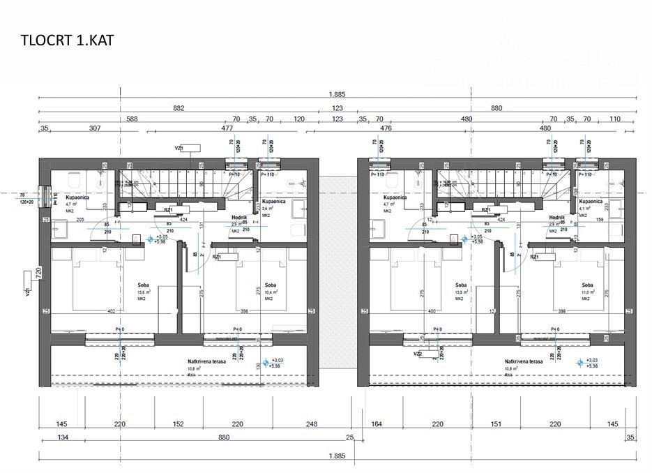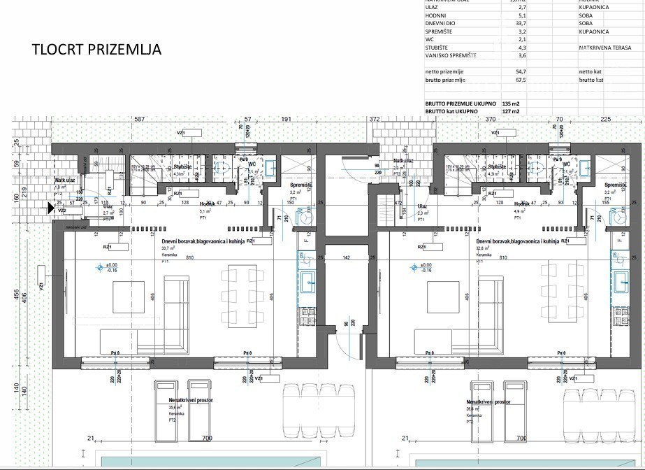 Hiša bo imela 131 m² bivalne površine na dveh etažah in bo zgrajena na zemljišču velikem približno 300 m².