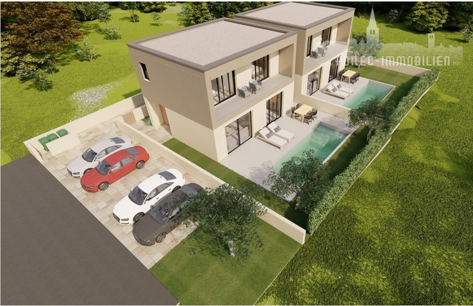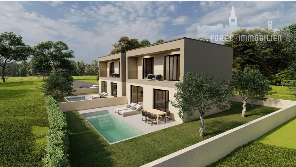 Na mirni lokaciji v predmestju Poreča, le 200 metrov od trgovin, restavracij in drugih potrebnih storitev, je naprodaj moderna dvojna hiša z bazenom – idealna tako za družinsko življenje kot tudi kot naložba za prihodnost.