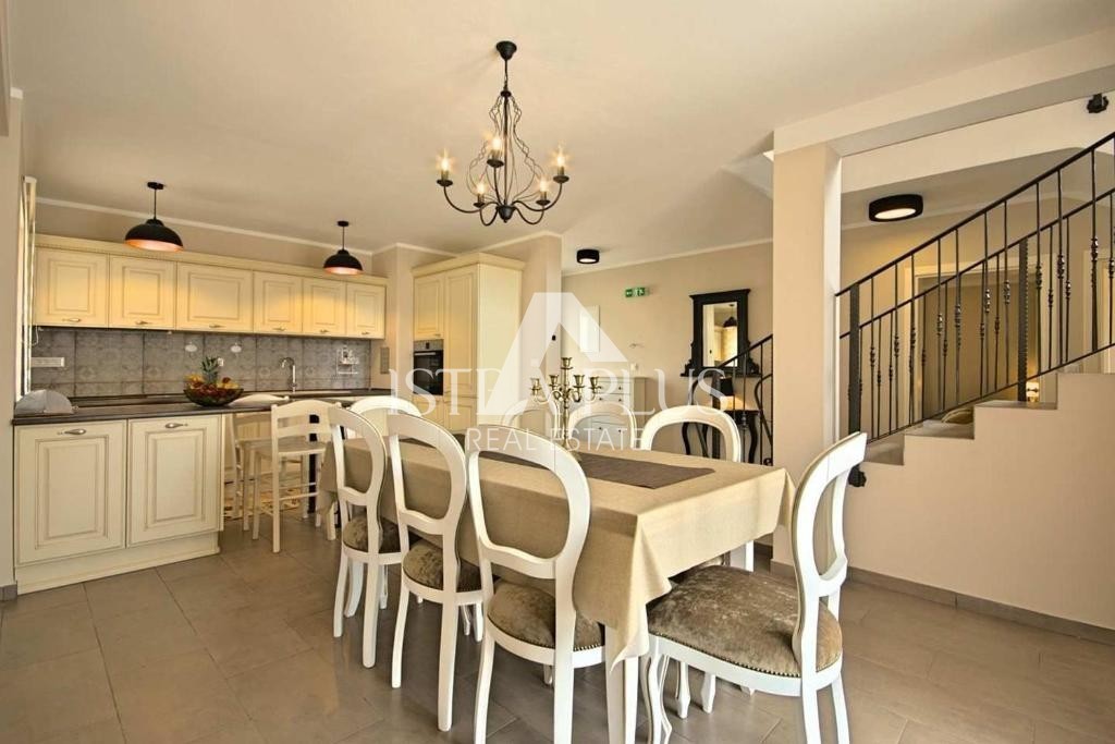 izjemno udobno, 165m2, popolnoma opremljeno in opremljeno, se nahaja na ograjeni parceli 818m2 na robu vasi z odprtim pogledom na podeželje.