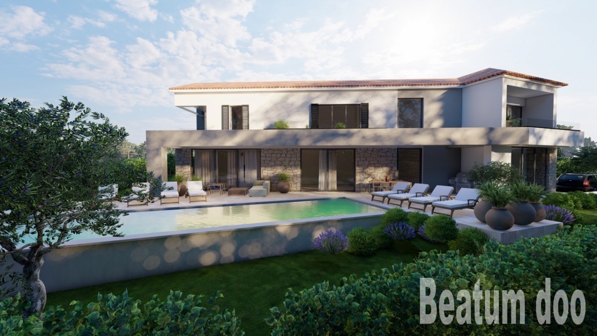 Čudovita vila je v gradnji, sestavljena je iz strojnice, dnevne sobe in kuhinje z veliko teraso ter ene spalnice s kopalnico, v pritličju in v prvem nadstropju tri spalnice s kopalnico in izhodi na veliko terasa s čudovitim pogledom na morje.