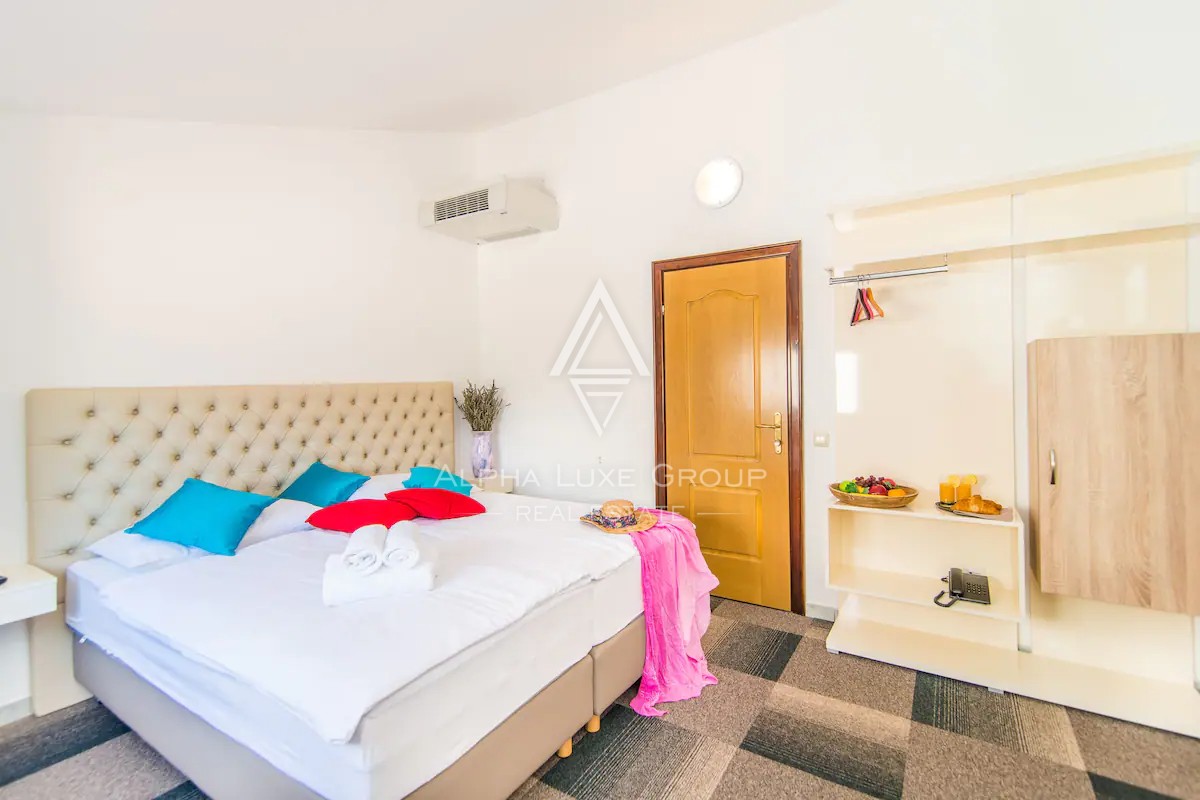 Nepremičnina obsega 1.250 m² čiste bivalne površine na 617 m² zemljišča, z dodatnimi 2.000 m² prostora za različne namene. Hotel se razteza skozi pritličje, dve nadstropji in mansardo, pri čemer ponuja 16 elegantno opremljenih dvoposteljnih sob, vsaka s svojim balkonom. Sobe v zgornjem nadstropju in razkošen apartma velikosti 225 m² ponujajo osupljiv pogled na morje, medtem ko sobe v prvem nadstropju nudijo čudovit razgled na staro mestno jedro Vrsarja.