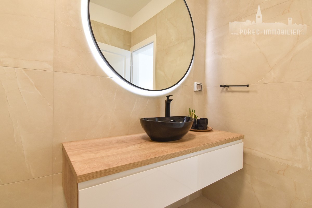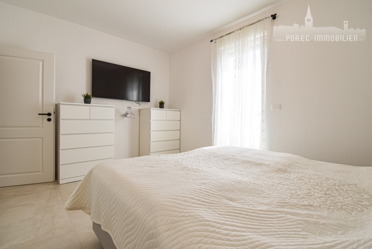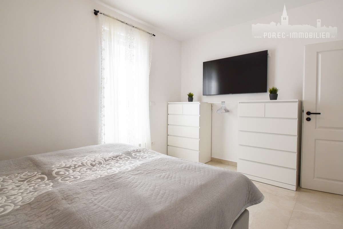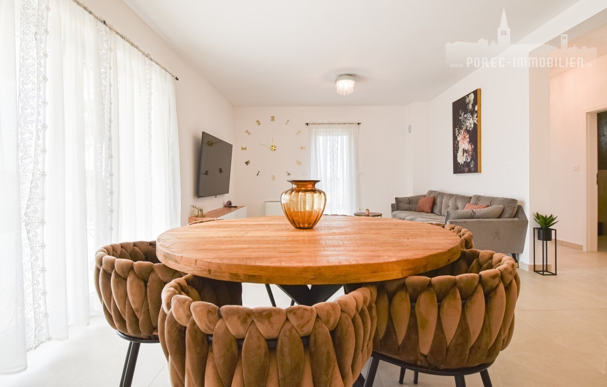 Ta popolnoma opremljena vrstna hiša, ki se nahaja na zelo zaželeni lokaciji le nekaj minut od morja in centra Poreča, je zdaj na voljo za prodajo. Ta dom ponuja najboljše iz obeh svetov – mirno družinsko zatočišče, ki je zlahka dosegljivo z osnovnimi dobrinami. Ne glede na to, ali želite uživati v živahnem središču Poreča ali se sprostiti ob morju, je ta nepremičnina idealna izbira za tiste, ki cenijo priročno lokacijo in mirno vzdušje.