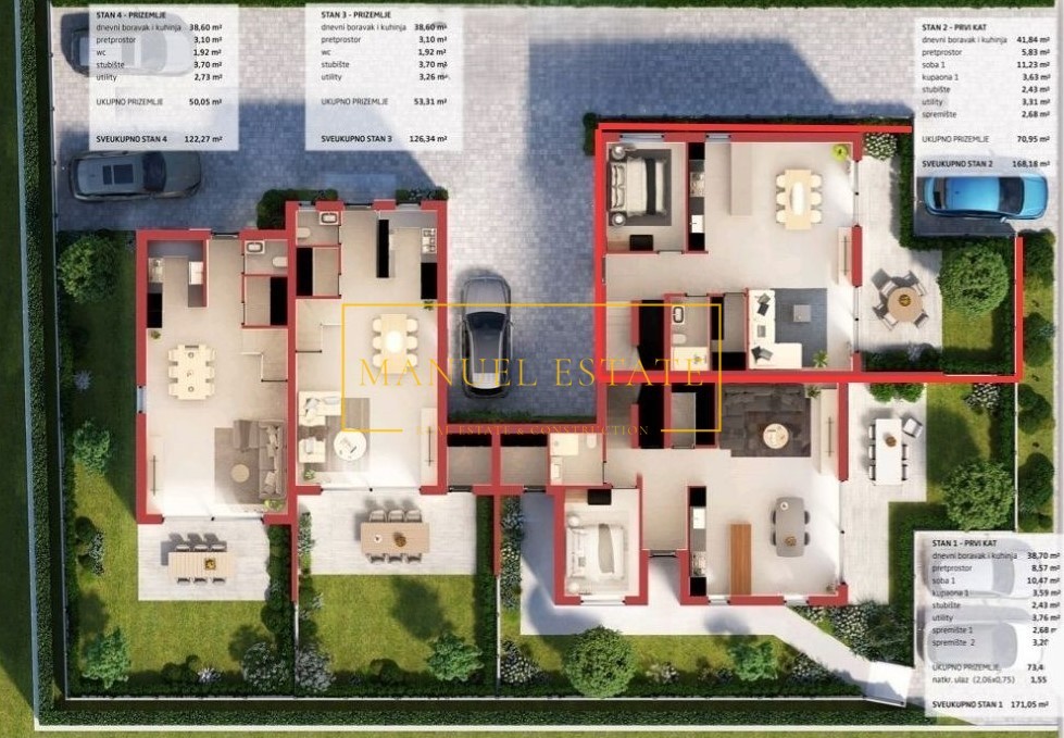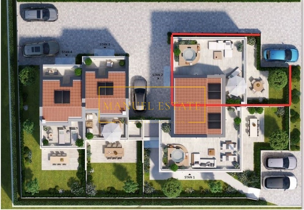 Obs: Om köparen efter visning (fysiskt tillträde/personligt besök) fastigheten i fråga med byrån "Manuel Estate d.o.o." fattade det slutliga beslutet att köpa den och avsluta försäljningen med ägaren av fastigheten, är han skyldig att betala byrån en mäklarprovision på 3% + moms av den totala köpeskillingen.