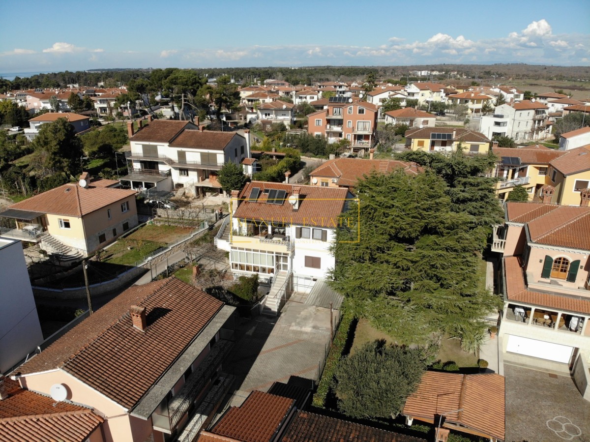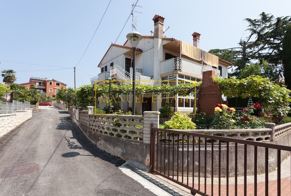 På en prestigefylld plats i Umag, bara 100 meter från havet och 500 meter från stadens centrum, säljs ett rymligt fristående hus med en total boyta på 276 m², beläget på en tomt om 422 m². Denna fastighet är idealisk för familjeliv eller som en investering med stor potential för turistuthyrning, tack vare dess närhet till stranden och alla stadens bekvämligheter.